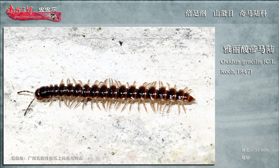| 斯氏陇马陆(奇马陆科) | 红条奇马陆(奇马陆科) | 雅丽酸带马陆(奇马陆科) | 粗直形马陆(奇马陆科) | 北京小直型马陆(奇马陆科) | 窄跗陇马陆(奇马陆科) |