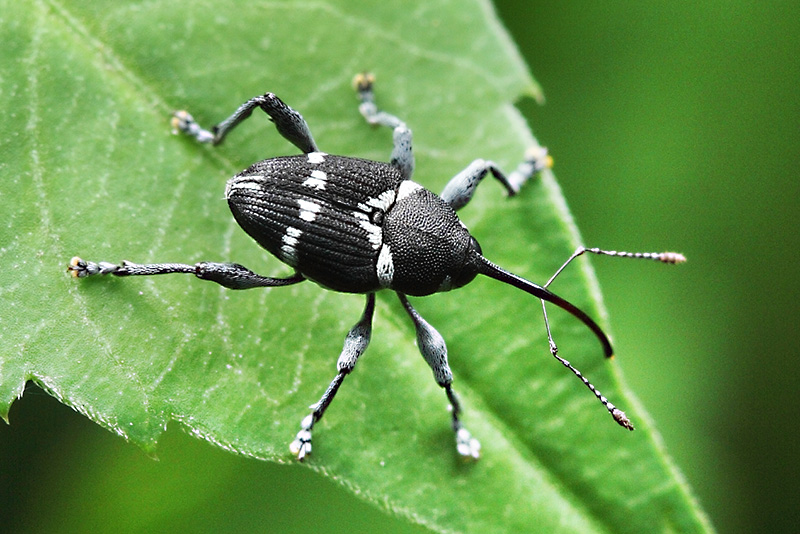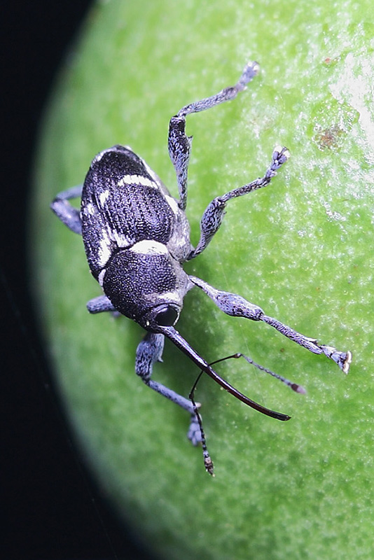 我们在吃板栗时,总会吃到为数不少的生虫栗子,可栗子外表却看不出有什么虫洞,是什么虫子闹的?这虫子是怎么进到栗子里去的?这种跟我们抢吃板栗的虫子叫做板栗实象,又叫栗实象甲,这货身体卵形,黑白花纹,体长只有7-8毫米,大大的眼睛,呆萌呆萌的,长长的鼻子(头管)与身体一样长,是板栗产区的主要害虫之一。板栗实象对板栗果实危害率为25―40%,受灾年份高达70%以上,严重威胁板栗质量。板栗实象成虫将卵产在板栗果蒂的周围,孵化的幼虫很小,通过果实外表皮蛀入板栗,孔非常小,用肉眼根本看不见。所以,人们在购买板栗时,常常无法挑选没有生虫的板栗。外表看起来完好的栗子其实里面已早已有幼虫“入住”了,在脱粒、运输和贮藏期间,随着栗子内的板栗实象幼虫不断发育,栗子的受害比例还会不断提高,直到大家吃板栗时才发现,已有部分比例的栗子被这种讨厌的“食客”品尝过了。这告诉我们一个经验,吃板栗一定要挑新鲜的,越新鲜生虫的比例越低。