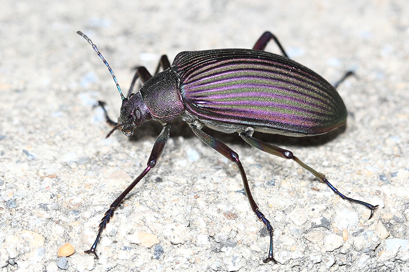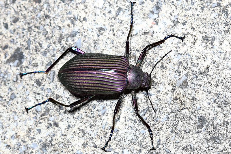 看到拱轴甲时,第一印象这就是只金属机器。它的身体黑色,体表有精致的金属色与纹路,具强烈的铜色金属光泽,而且是纯铜的质感。拱轴甲的足细长有力,攀爬能力很强,飞翔能力也不错。它主要栖息于中高海拔地区,喜欢在树干、岩石表面巡游。拱轴甲最早发现于广西那坡县,因而也叫做那坡拱轴甲。 分类:昆虫纲 鞘翅目 拟步甲科 图像采集地:广西上林县大明山 |