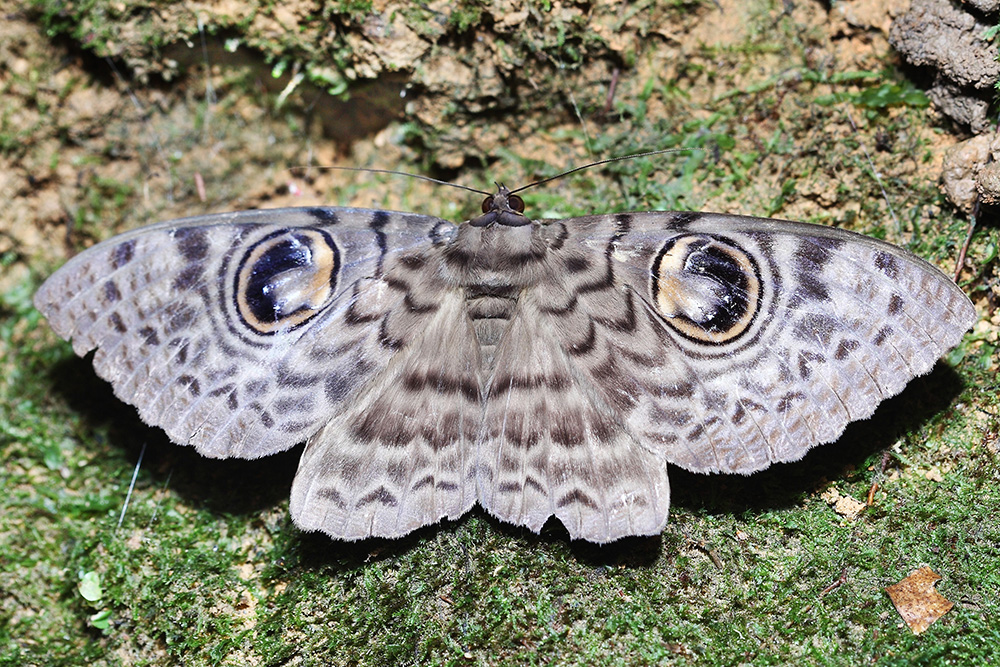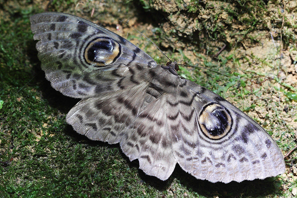 卷裳目夜蛾是一种夜间活动的大型蛾子,翅展能达12厘米。它色泽暗淡,翅上有大量的波浪状卷纹,一看就知道是暗夜飞行者。其最显著的特征是翅上有一对令人生畏的“眼睛”,盯着周围的一切,以期吓退觊觎者。卷裳目夜蛾常在夜间出没,它白天藏匿于干燥的大树或者废弃的房屋之上,起飞时像一只蝙蝠,给人一种阴森恐怖之感,被称为热带森林中最诡异的蛾子之一。卷裳目夜蛾主要分布在亚热带地区,从我国南部、印度到东南亚均有分布,于1768年由著名博物学家林奈首次命名。