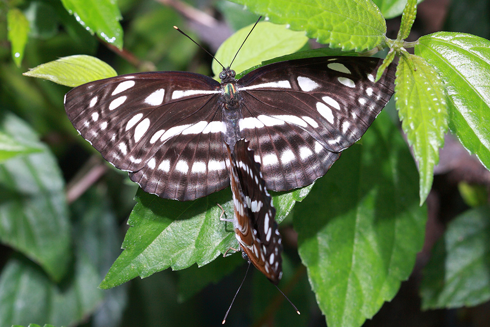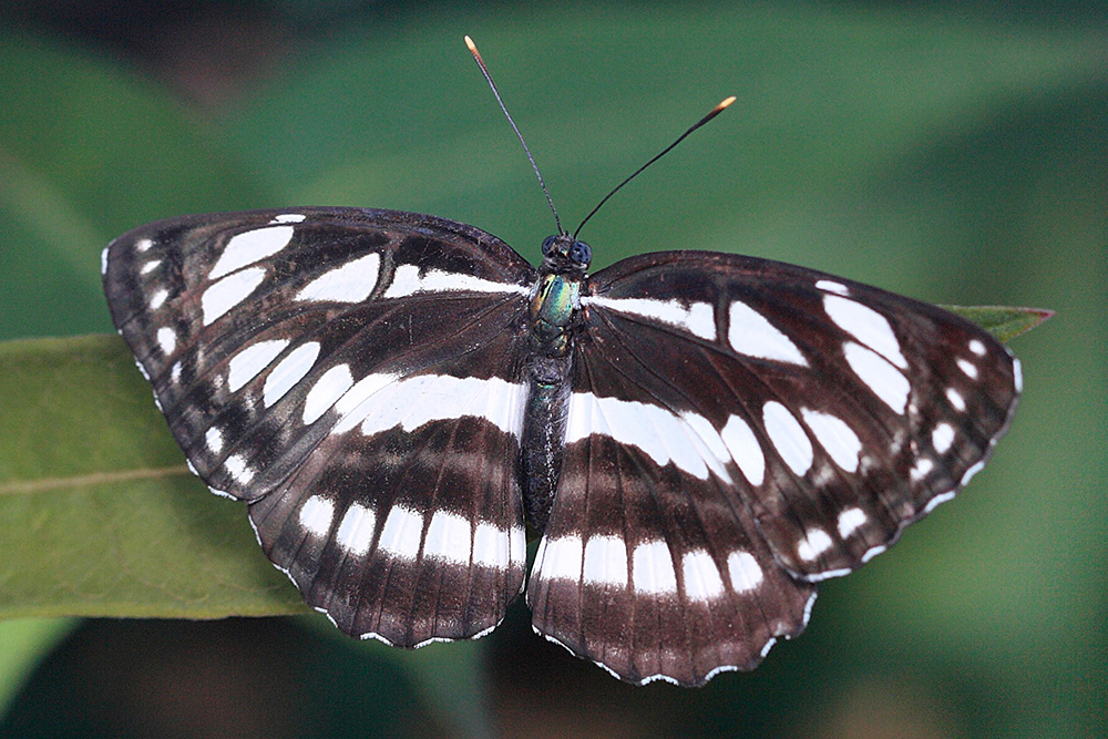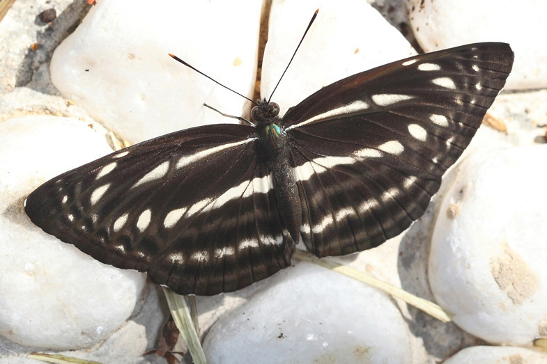 在蛱蝶中有一类蝶是不易分辨的,原因就是这些蛱蝶不约而同的喜欢上了黑白条纹装,即黑色的底,白色的条纹+白点。喜欢黑白装也没什么问题,但你不能相互抄袭,把身上的条纹画得大差不差,难以分辨吧!当一群穿着黑白条纹装的蝴蝶在身边飞舞时,昆虫学者一定会感觉到脑袋里嗡嗡的,这不是拿着蝶国知识产权当儿戏吗?尽管如此,不同种的蛱蝶其斑纹的粗细、长短、排列还是有细微差别的,特别是翅的反面、颜色、斑纹就更丰富,识别特征就更清晰了。下面就见识一下这些固执的家伙吧。