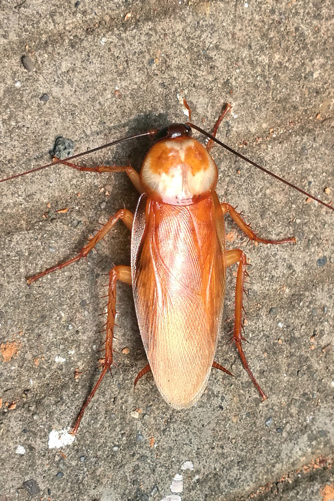 美洲大蠊是我们周边最常见的蟑螂,型体巨大,行动敏捷,让每一位看到它的mm都惊叫不已。它混迹于阴暗潮湿的角落,以腐烂的食物为生,在家里偷吃我们的食物,对人体有不利影响。它有着极强的生命力,气管发达而血管简单,断腿能修复,去掉头仍能继续存活……直至饿死,抗杀虫剂的能力超强,“小强”的英名可不是随便叫的。