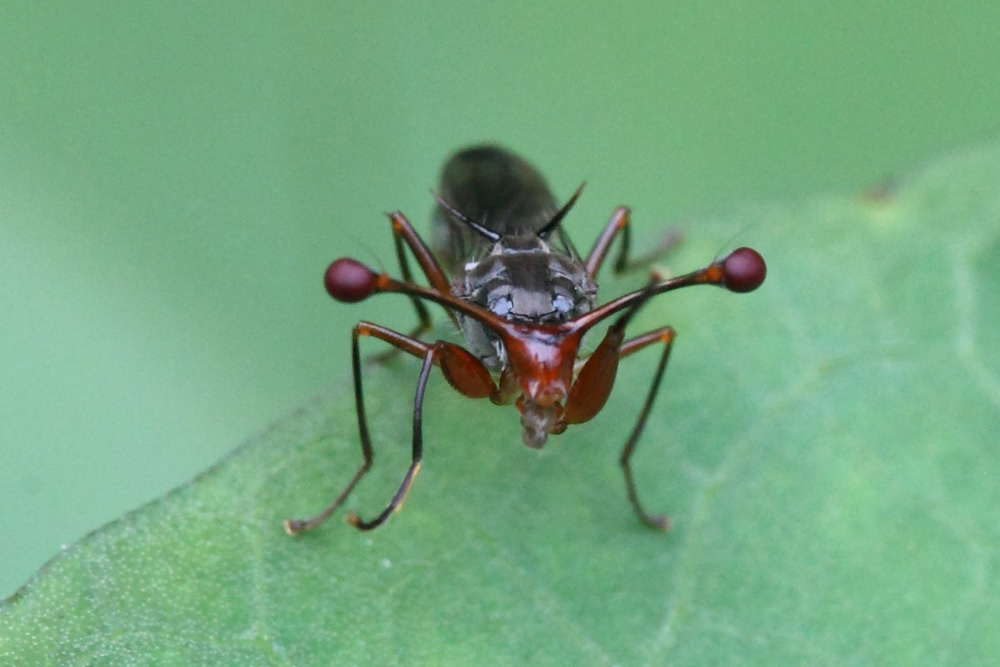 不同昆虫有不一样的眼,但眼都是长在头上的。昆虫界就有那么一股清流,它的眼睛不是长在头表面,而是长在从头上伸出的两根长柄上,像个棒槌,是否好看先不说,视野开阔的是不要不要的,这就是突眼蝇。突眼蝇是双翅目突眼蝇科昆虫家族的统称(图中为其中的一种),它的眼是怎么来的呢?告诉你吧,雄性突眼蝇那长长的眼柄是用来找女朋友的!在突眼蝇女孩眼中,只有眼柄最长的