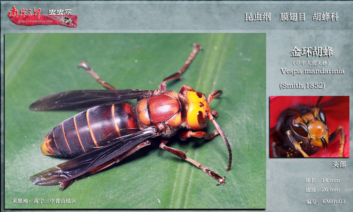 金环胡蜂(图1):金环胡蜂体型最大,毒性最强,极易狂怒,它的毒针还能够连续多方向蛰刺,导致被攻击者过敏性休克,进而可能导致肝肾衰竭。名列“杀人蜂”第一名。墨胸胡蜂(图2):墨胸胡蜂头胸部黑色,被黑色毛,脚爪带点黄颜色。墨胸胡蜂蜂巢巨大,蜂群量极大,有极强的攻击性,从被激怒到发动攻击的时间极短。名列“杀人蜂”第二名。黑腹虎头蜂(图3):黑腹虎头蜂腹部几乎全为黑色,体表密生绒毛。它性情凶猛,护巢性极强,只要距离蜂巢5米远它便会发动攻击,直至将入侵者追赶至2公里远。名列“杀人蜂”第三名。黄腰胡蜂(图4):黄腰胡蜂腹部