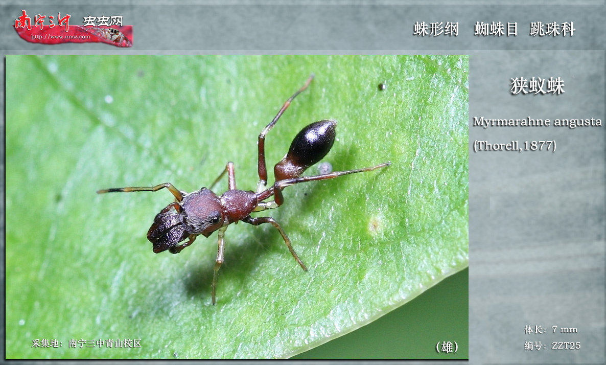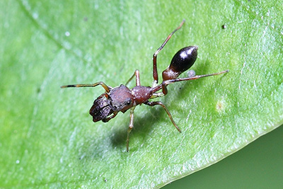 蚂蚁是周边常见的昆虫,以大集群活动而著称,虽然每个个体很小,却没有人能抵挡它的集团冲锋,在昆虫界是战斗力爆表的存在。在榜样面前总会有众多的仰慕者、追随者和学习者,于是,自然界中大量的山寨蚂蚁出现了,形神兼备的打扮使它们得到了更多的生存机会,这就是拟态蚂蚁现象。出门踏青看到下面的虫,你若认为它们都是蚂蚁,那你就输了!图1是梭毒隐翅虫,图二是灰斑长蚁形甲,它们都与瓢虫同类(鞘翅目);图3是条斑新颚蛛,图4是狭蚁蛛,它们都属蜘蛛;图5是绒蚁蜂,与蜜蜂同类(膜翅目);图6是双齿多刺蚁,…e……,它真的是蚂蚁!