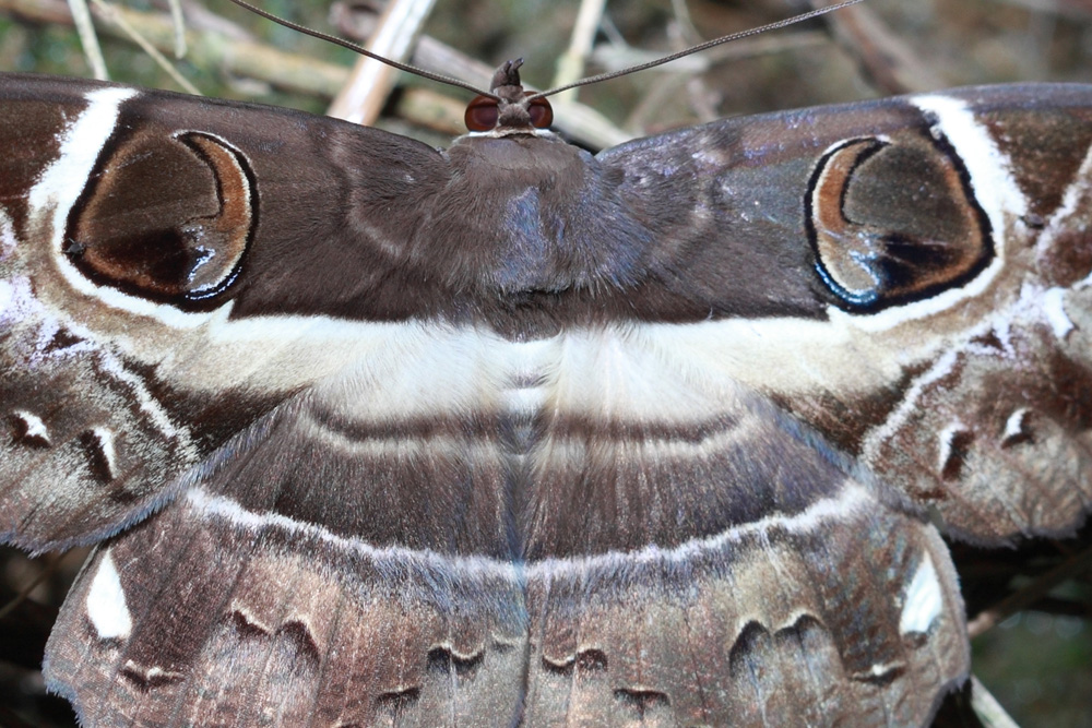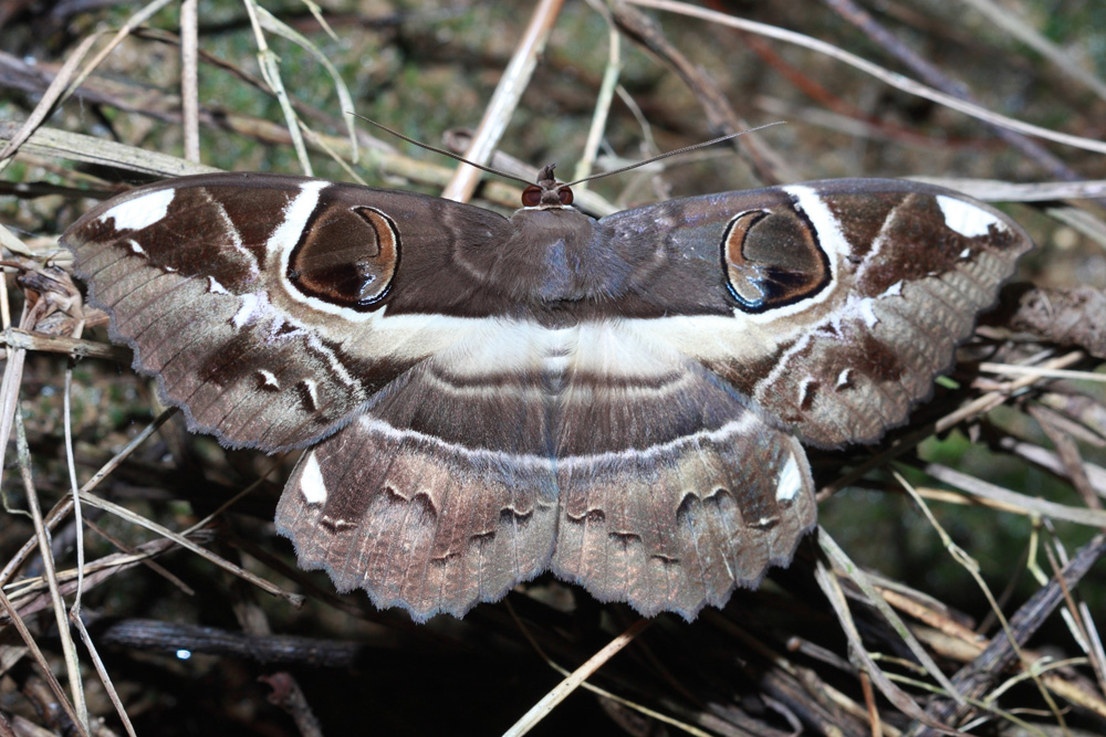 蛾类在昆虫中是弱者的存在,大多沦为其他动物的美味食材,更是鸟类等动物的“大米饭”。但其中也不缺志存高远而奋力前行者,魔目夜蛾就是一只自强不息的大蛾。魔目夜蛾体型巨大,翅展接近10厘米,起飞时像一只中等体型的鸟,足以吓退一批进食者。它的翅上有一对巨大的眼斑,像极了猫头鹰的双眼,整个翅面就像一个张开大嘴的怪兽,当你注视这只蛾的时候,那对有魔力的眼似乎也在看着你,直到看得你脊背发凉!这种大蛾的“魔目”可不是浪得虚名的,它足以让大多数天敌退避三舍,大自然的进化实在是太精秒了!