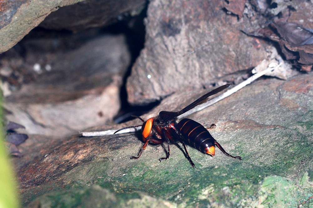 20多只金环胡蜂就足以在2小时内杀光一个由数千只蜜蜂组成的蜂群,并把蜜蜂的巢穴据为已有,而且会把杀掉的蜜蜂撕成肉球喂给自己的幼虫,十分凶残。