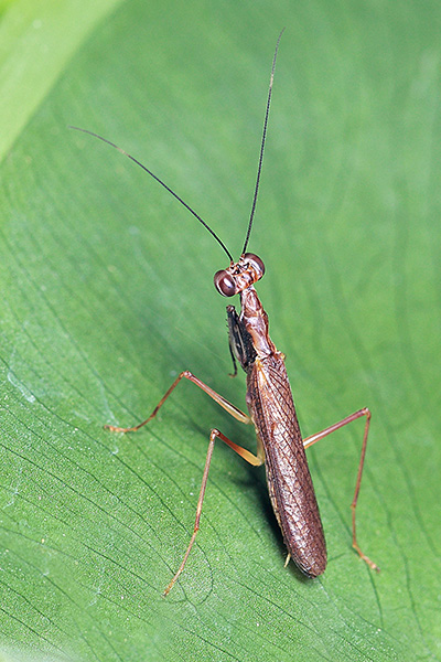 提到螳螂,人们头脑里就会出现这样一个形象,大个头,好身材,一对大刀挥舞行走江湖,有万夫不当之勇,气势逼人,听说还能挡车。但在螳螂界却很少有人注意到一个小个子,那就是顶瑕螳。顶瑕螳又叫毛螳,体长不到15毫米,极不起眼,是世界上体型最小的螳螂。它身板虽小,但是也吃肉的,虽然比起同类,它整个外形按比例缩小了几圈,还是“螳螳正正”的螳螂。