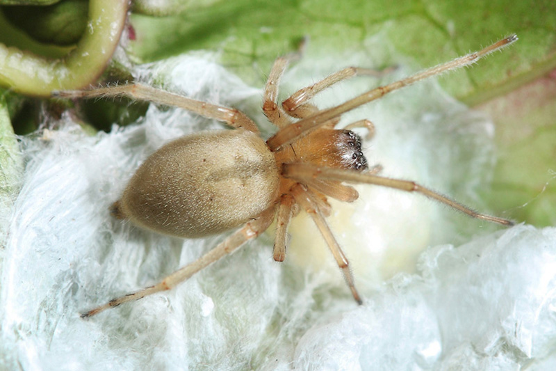 弱红螯蛛是一种不常见的蜘蛛,它分布在世界各个角落。成年的雌性弱红螯蛛成黄褐色,体长约有6-8毫米大小,雄性身体为浅红色,体型小于雌性。弱红螯蛛生活在草丛底层,肉食性,与其他游猎性蜘蛛没有太多的不同。弱红螯蛛的特别之处在于雌蛛一生只生一次蛋,弱红螯蛛妈妈不想再生一次蛋吗?想的,但是它的娃不允许呵。弱红螯蛛的娃与其他蜘蛛比可是个狠角色,它是一种非常可怕的食母蜘蛛。在母蛛生下幼蛛后,弱红螯蛛的幼蛛就附着在母蛛体上,将口器插入母体内,吸食母体的体液。母蛛此时似乎失去了运动能力,躺在那任其啮食,使得母蛛没能活到下次产娃。这种牺牲母体养育后代的方式尽管残忍,但保证了后代的成活率,成为某些蜘蛛的繁殖方式。
