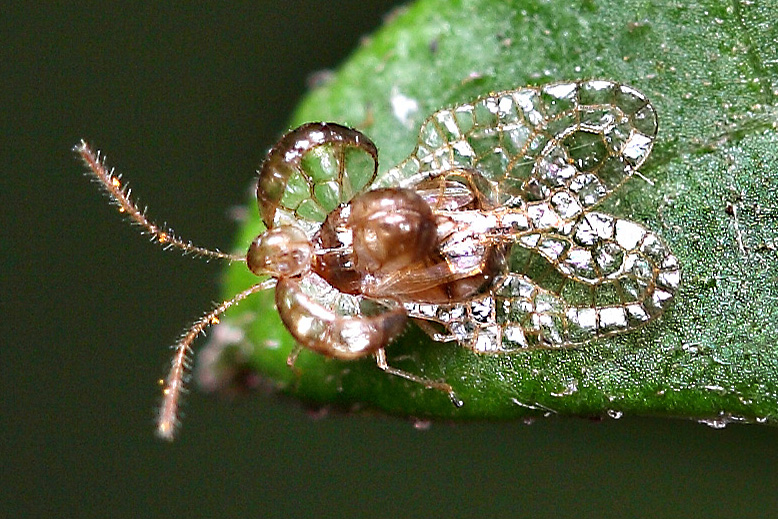 拥有一件公主裙或泡泡裙是每个小姑娘的梦想,可人们不知道,有一种虫天生就有一件泡泡裙,而且非常精致,贝肩网蝽就是这样一位幸运虫。贝肩网蝽体型很小,体长只有4-5毫米,但身材小却挡不住人家长相精致呵!和其它典型的“漂亮昆虫”截然不同,它没有艳丽的色彩,没有翩翩秀翅。但长得很艺术。它的前胸背板和前翅强烈向外扩展,形成透明的泡泡状的结构,不仅类似蕾丝的构造,还闪闪发亮,像极了小姑娘的泡泡裙,非常可爱。我们不知道贝肩网蝽长出这些精致的结构有什么用,为了隐藏自己?为了收集阳光热量?还是为了抵御天敌?似乎都不是。难道是要靠出众的颜值来相亲吗?也不太像,因为它已经足够漂亮了。